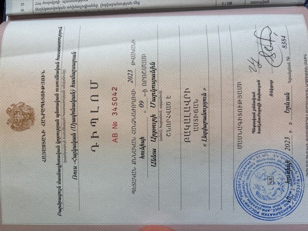 English and Russian language classes: 1. For students entering universities 2. Individual courses 3. Group courses 4. Conversational English 5. Amateur English 6. Online English, Russian I graduated from the Armenian-Russian (Slavonic) University Profession - Linguist.